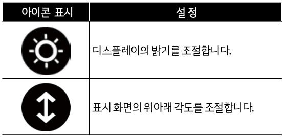 - 메뉴 버튼: 메뉴 버튼을 눌러 아이콘 표시 영역을 확인하고 원하는 밝기와 각도를 선택